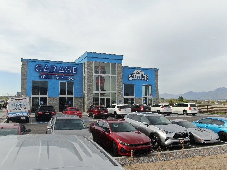 Garage Grills: bold, grill-centered comfort food with a modern twist. Charred steaks, juicy burgers, flame-kissed chicken, smoked sandwiches, and shareable sides like seasoned fries and loaded tots. Seasonal salads and fresh seafood balance the menu. Signature sauces and house pickles add flavor. Desserts are classic with a refined touch—skillet brownies and grilled fruit with ice cream. Drinks: Salt Flats Beer, Home Made Cocktails with Salt Flats Spirits cocktails, and a small wine list.